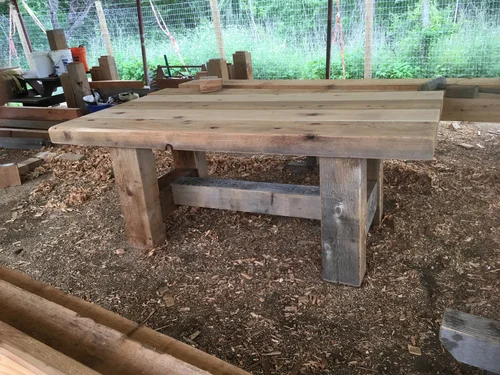 The table is unfinished Western Red Cedar.