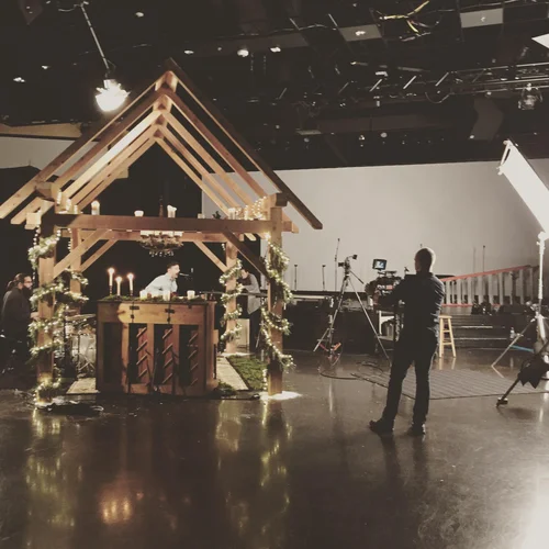 This was a fun Christmas project. This small frame was built to house a Christmas music video series for Austin Ridge Bible Church. The frame was erected inside building D and was put up and taken down all in one week.